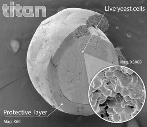 Titan beadlet section in scanning electron microscopy (Lallemand Animal Nutrition).