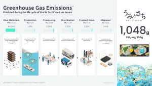 • GHG emissions produced during the life cycle of Umi to Sachi’s ASC certified red sea bream (per 100g of product)