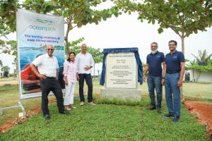 Oceanpick founder Irfan Thassim (second right) and directors at the naming ceremony; Naming of the hatchery and Alain Michel, Irfan and staff.