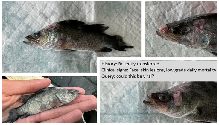 Keeping farms disease-free can be expensive. Representative fish samples and test selections are important in disease diagnosis. Gibson-Kueh cited a case where a farmer suspected viral disease on fish. She said, clinical recently transferred to grow-out tanks. signs generally appear more than 2-3 weeks after viral infections, and based on the face lesions it is more likely that cannibalism and recent transfer stress are responsible for poor health in these fish.
