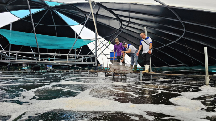 According to Tuan, each pond is covered with a specialized tarpaulin, completely isolated from the outside environment, helping to minimize the risk of disease, while easily adjusting the temperature and light in the pond. In addition, the company also applies IQC software to update and analyse environmental factors, daily feed consumption of farmed shrimp, algae growth rate, etc, thereby facilitating timely adjustment and handling when there are fluctuations.