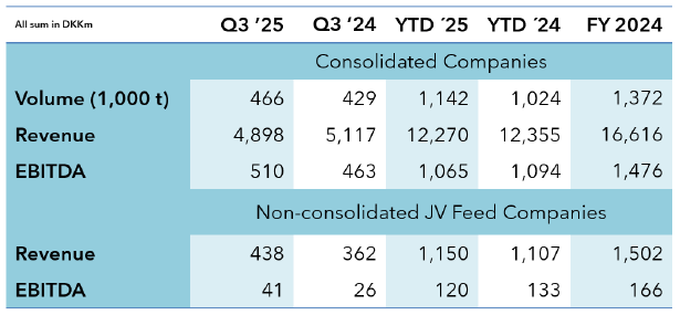 “With the strong growth in volumes in Q3, we are well ahead of last year, and with only few months left of 2025, I am looking forward to closing another good year for BioMar. We have delivered growth in volumes with solid margins, and we are on track with our strategic ambitions