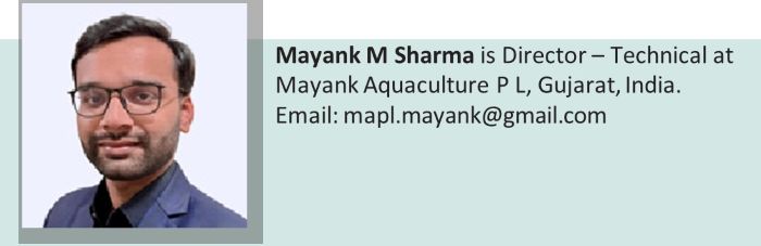 Additionally, this also reduces the freight cost per post larvae with more per cargo. It is important to get early post larvae as in our region the cost of Litopenaeus vannamei post larvae is USD 5.84/1,000 PLs or INR 0.50/PL. This helps in reducing the price of post larvae by 20 to 25%.