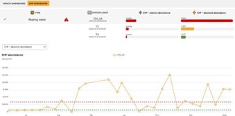 Delivered through the Kytos platform, the dedicated EHP dashboard transforms complex microbiome data into clear, actionable insights: spore density trends are visualised in real time, benchmarked against an extensive country-specific database and contextualised to distinguish background levels from critical infection thresholds (Figure 2). A continuous monitoring of pond water and shrimp tissue allows producers to detect deviations from baseline microbial conditions, anticipating outbreak risks with time to intervene.