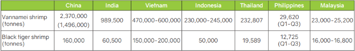 Official data from the Department of Fisheries (DOF) showed a 0.7% decline for vannamei shrimp production to 232,807 tonnes. Industry sources gave a higher estimate of 380,000 tonnes.