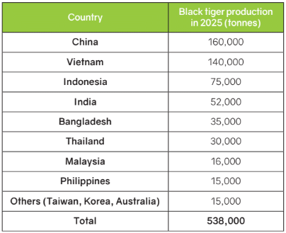Table 2. Industry estimates for black tiger shrimp production (tonnes) in 2025. Source: Robins McIntosh, Charoen Pokphand Foods, Thailand