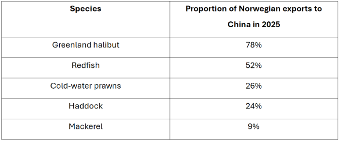In 2025, China emerged as the market with the highest value growth for Norwegian seafood, with an increase in export value of NOK 2.9 billion (31%) compared with the previous year. China purchased Norwegian seafood totalling NOK 12.3 billion and stepped up from being the sixth largest market in 2024 to the third largest market in 2025.