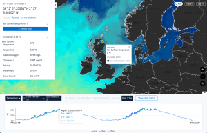 Umitron Pulse (https://www.pulse.umitron.com/home), a worldwide high-resolution satellite ocean data map for aquaculture farmers. The long-term historical and forecast data allows users to investigate environmental trends and provides them with an overview of their site performance.