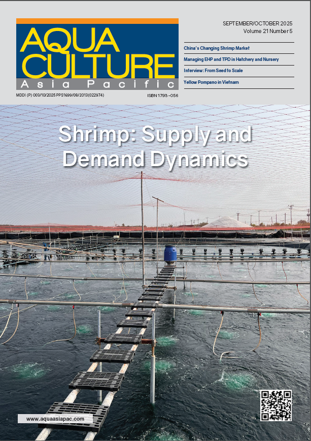 September/October 2024 Interview: New Circular Economy Venture in Vietnam Health Functionalities in Shrimp Feeds Indonesia Shrimp Farmers Day Marketing, Branding, and Sustainability of Asia’s Farmed Finfish View Download To download PDF, please login.If not yet a subscriber, please subscribe.